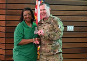 Leaders and organizers praised the coordinators of the event. Angela Powell-Lewis, registered nurse and case manager, Family Medicine Readiness Clinic and lead coordinator received a commander’s coin for organizing the event, but she quickly recognized other members of the committee, like Juvy Bergeron, registered nurse and case manager SRU, CRDAMC, for registering the resource community partner vendors for the conference.